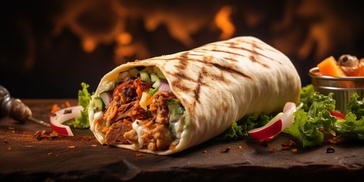 Beef shawarma wrapped in tortilla bread